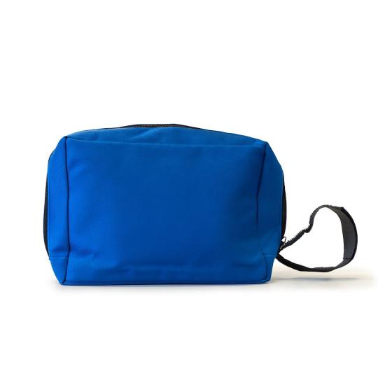 Compact en stevig blauw EHBO tasje, ideaal om zelf te vullen. Gemaakt van waterafstotend nylon en te personaliseren met eigen logo of tekst. Levertijd met bedrukking: 2–3 weken.